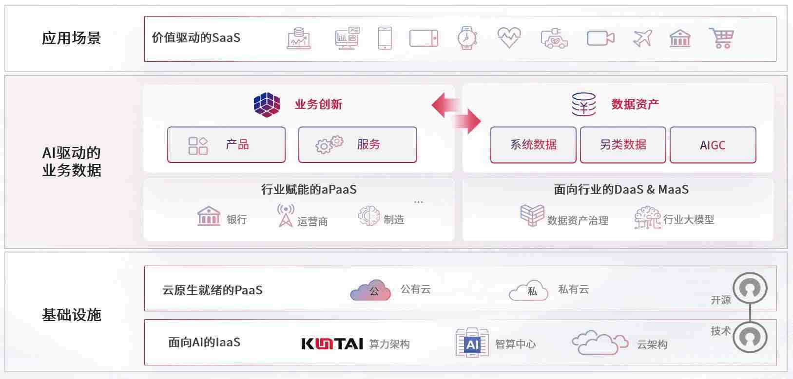 数字时代,,,围绕企业数字化转型的关键要素,,,,尊龙z6数码开创性的提出数云融合战略和技术体系框架,,,着力在云原生、、、、数字原生、、、AI原生和信创产业上架构产品和服务能力,,为处在不同数字化转型阶段的快消零售、、汽车、、金融、、、、医疗、、、政企、、、、教育、、、运营商等行业客户提供泛在的敏捷IT能力和融合的数据驱动能力,,构建跨界融合创新的数字业务场景和新业务模式,,,助力企业级客户建立面向未来的核心能力和竞争优势,,,,全面推动社会的数字化、、、、智能化转型升级。。。