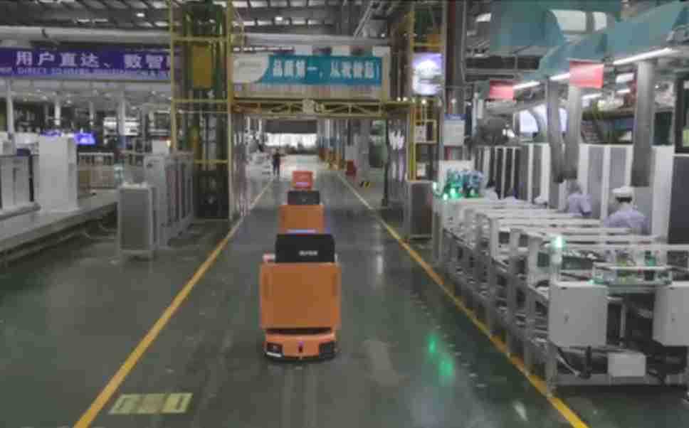 为车载冰箱物流配送打造的智能解决方案,,,包含产中物流通过潜伏举升AMR搬运至线边,,,,产后成品物流智能仓储,,,流程包含产中物流智能齐套入库,,线边安灯叫料AMR智能配送至线边,,成品入库、、、出库,,,通过无人堆高车机器人,,,智能仓储管理替代人工作业管理,,,实现更高存储、、、更高效率、、、更具柔性化的解决方案。。。
